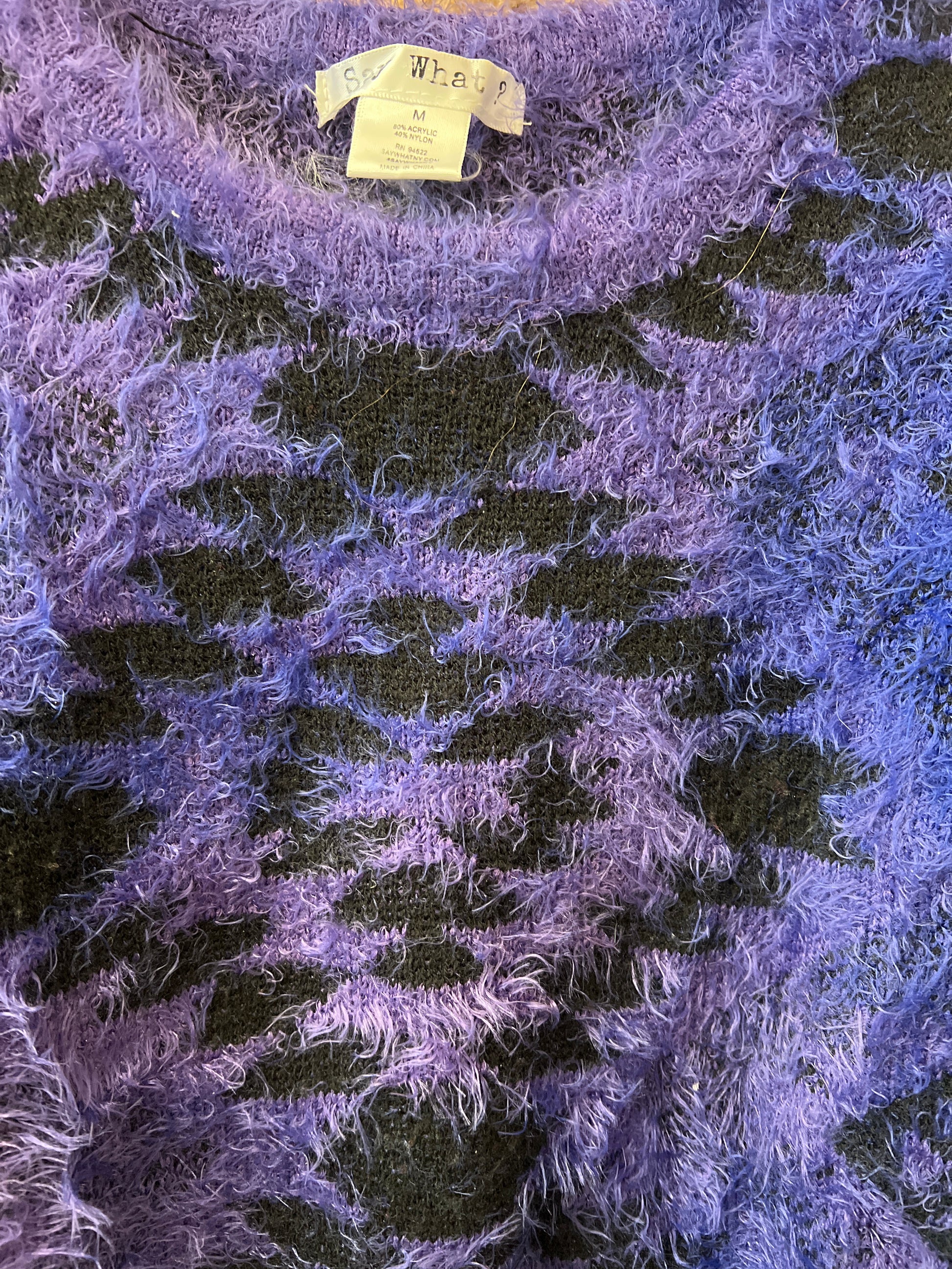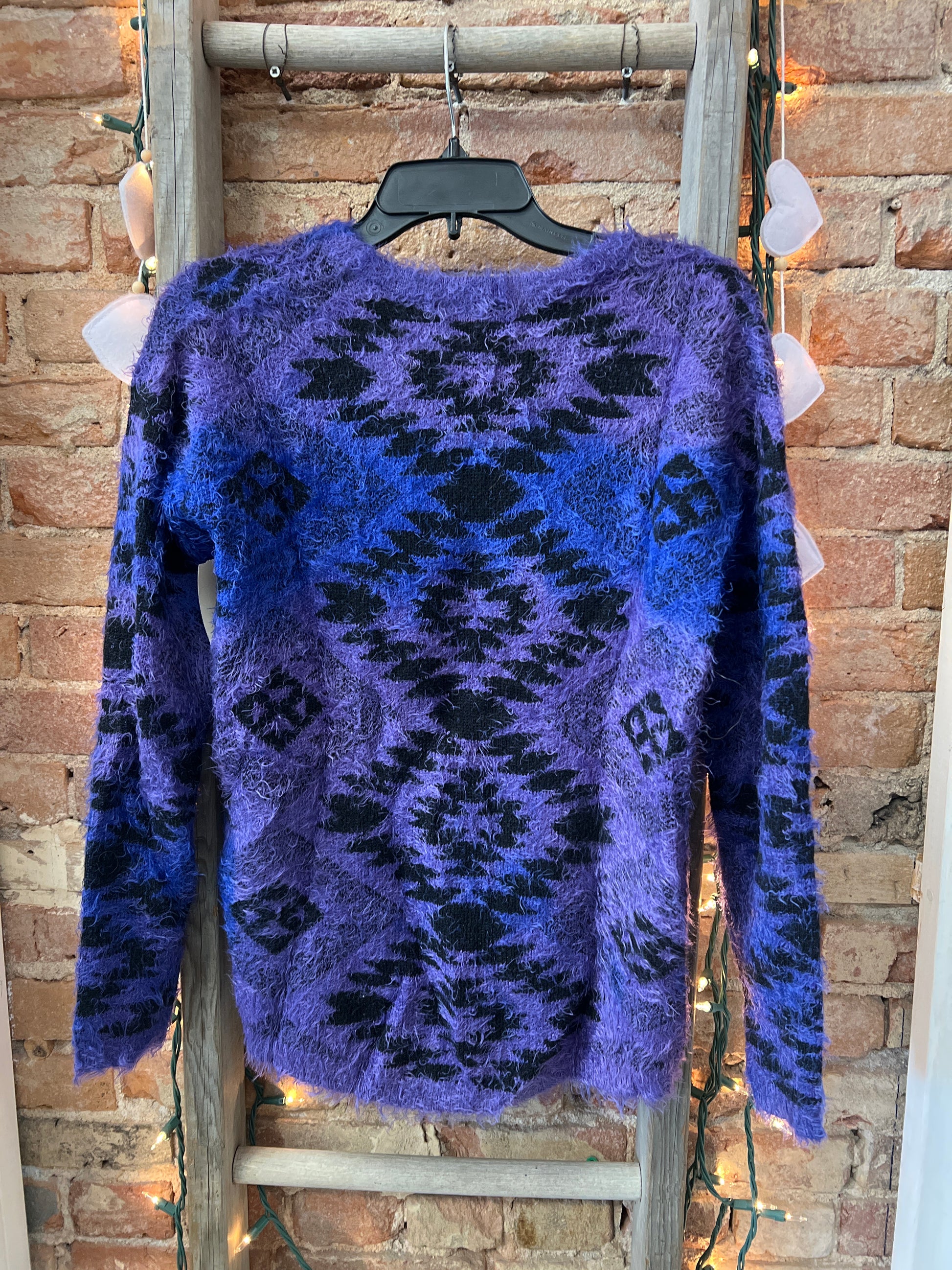 Say What? - Purple Aztec Fuzzy Sweater - Medium